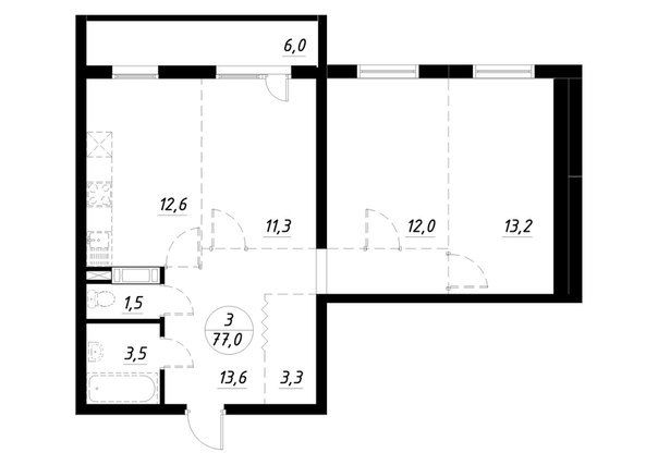Общая площадь: 77 кв.м.
